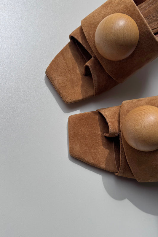 MULE VAZADO ESFERAS - camurça ocre