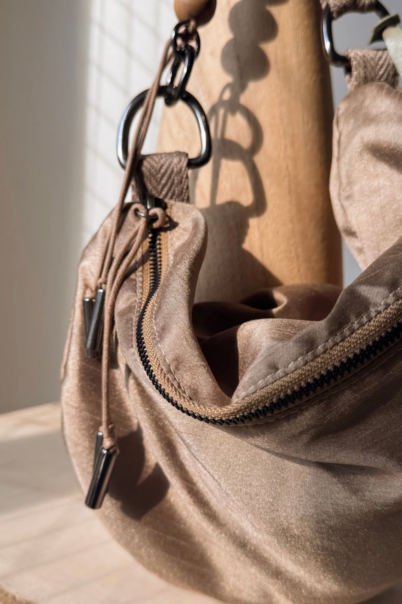 Produzida manualmente com tecidos excedentes da indústria têxtil, a nossa viciante Bolsa Canoar, tem 2 versões: a P é aquela versão que vira pochete. A G é versão maiorzona dela e dá 3x o tamanho da P, pra vocês terem ideia de proporção. Ambas possuem alça com regulagem de altura e mosquetão para abertura. O interior delas não tem divisórias internas. O fechamento de ambas se dá através do zíper. Contém detalhes em madeira pinus no formato esférico que não seguem um mesmo padrão de coloração e textura para cada bolsa produzida, justamente por se tratar de um material natural.
