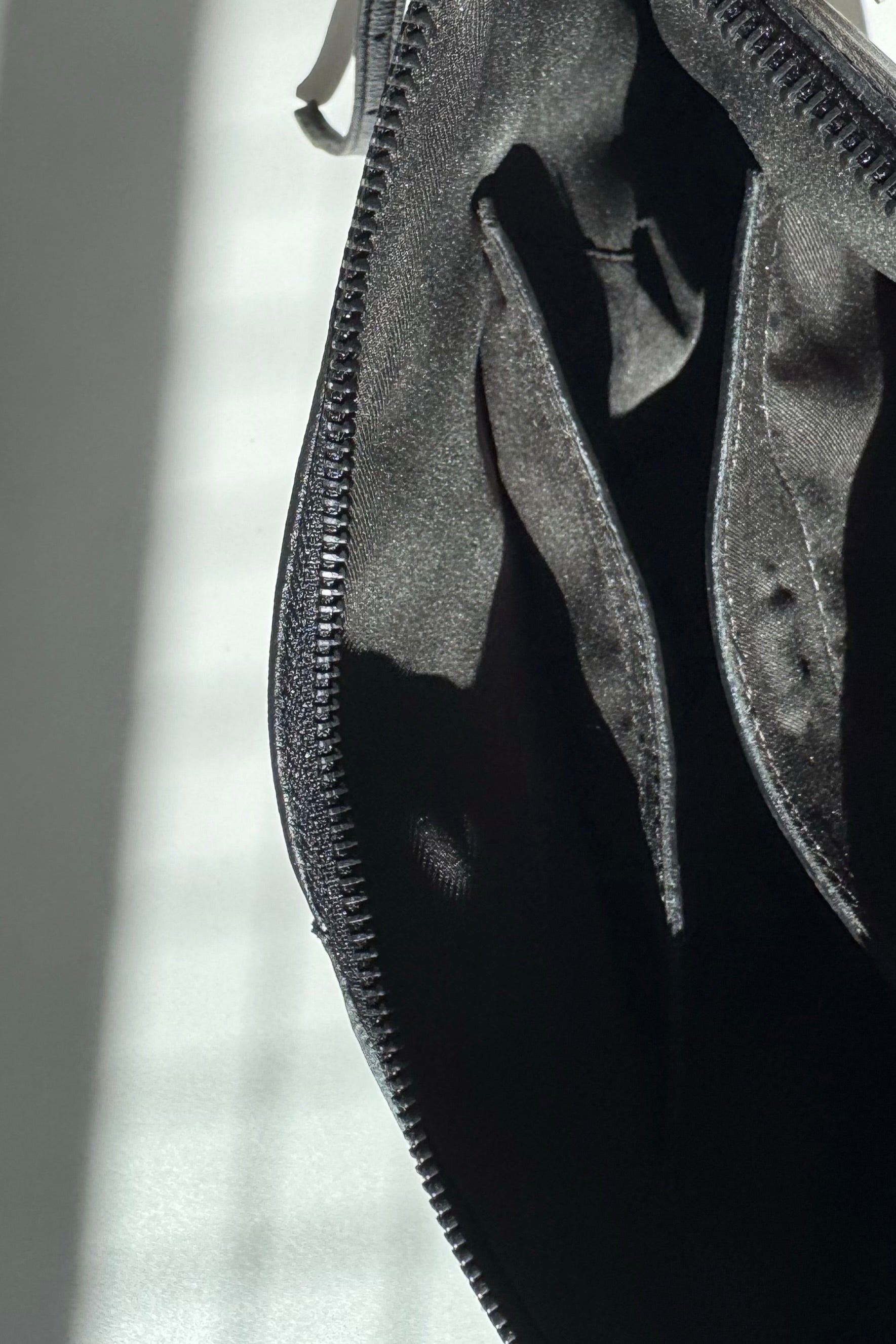 Seu fechamento é por um único zíper central.