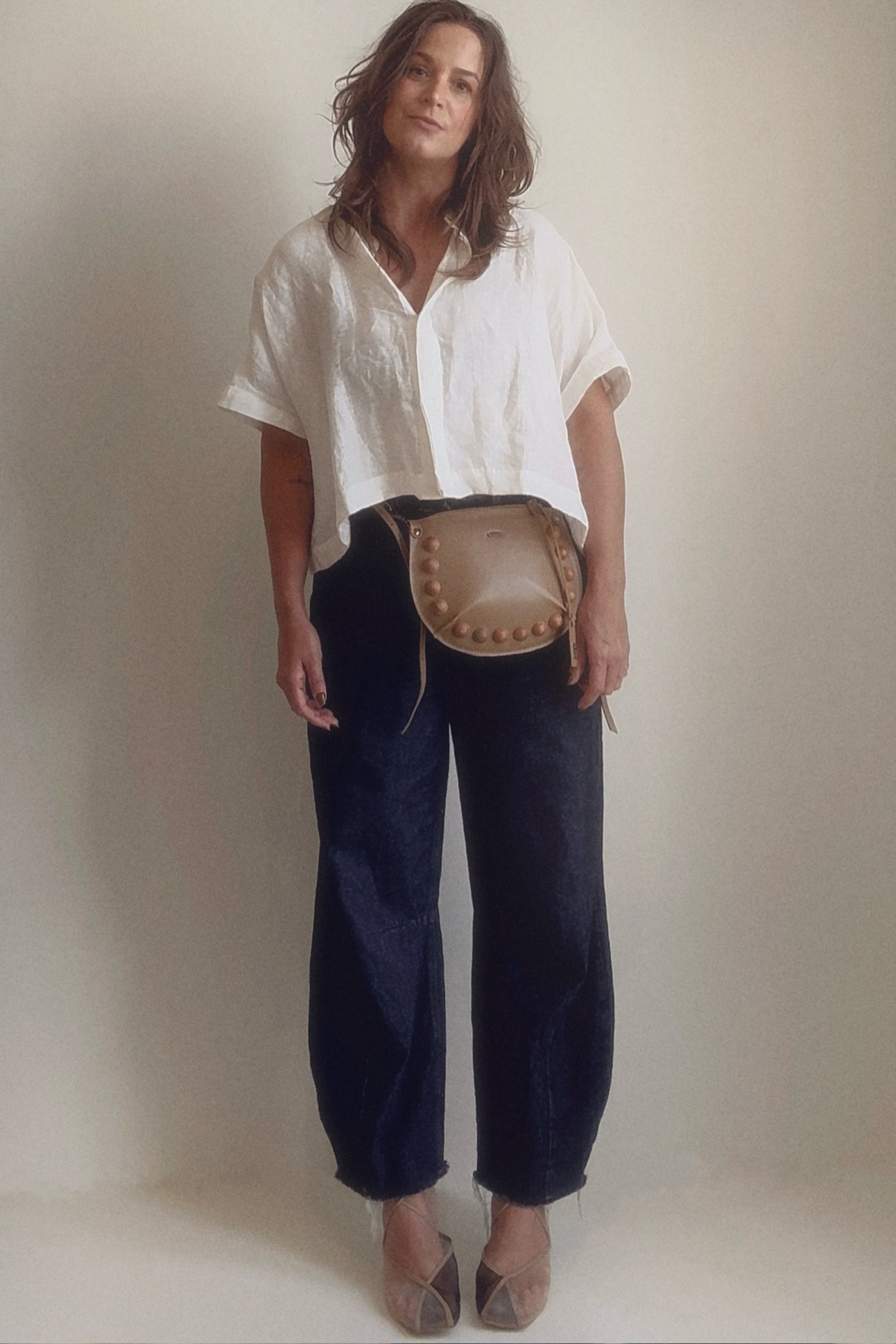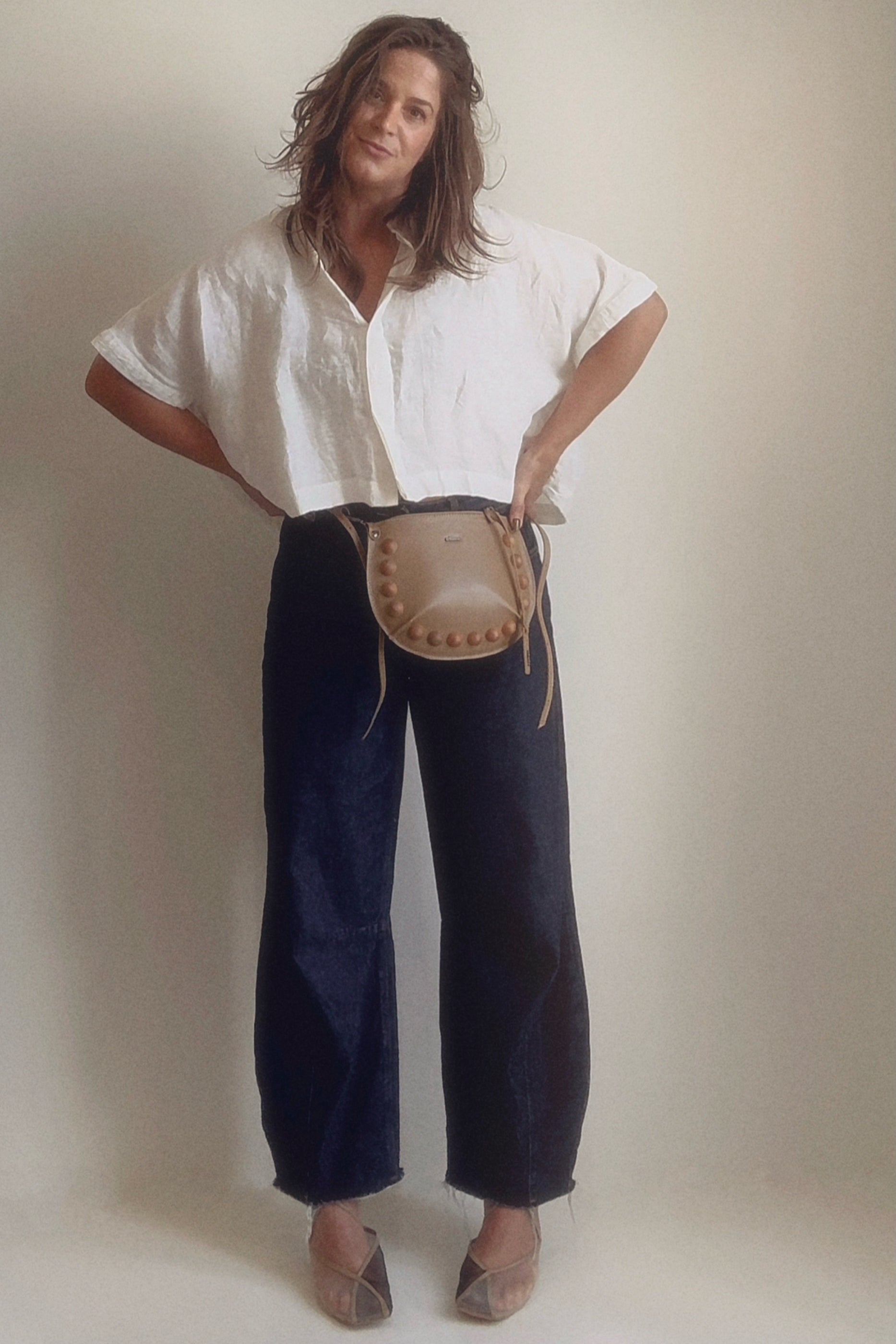 100% couro legítimo bovino. É bom salientar que por se tratar de pele animal, algumas pequenas marcas no couro não são consideradas defeitos, mas sim marcas de que a pele passou por pequenas intercorrências como carrapatos e cercas de arame farpado ao longo da vida. Por ser um couro de acabamento mais in natura, “transparente” que costumamos falar, sem o excesso de pigmentação da tinta e aplicação de chapa de gravação de textura, essas pequenas “marcas” eventualmente estarão mais visíveis do que outras na confecção da bolsa. Outro ponto bastante importante a ser tocado, é sobre o aspecto do couro desta bolsa com o passar do tempo; com o uso constante, pode apresentar sinais de desgaste da tinta em seu acabamento, o que torna cada peça cada vez mais única, mas jamais irá partir ou esfarelar como um material sintético faria, por exemplo. Couro legítimo não esfarela.