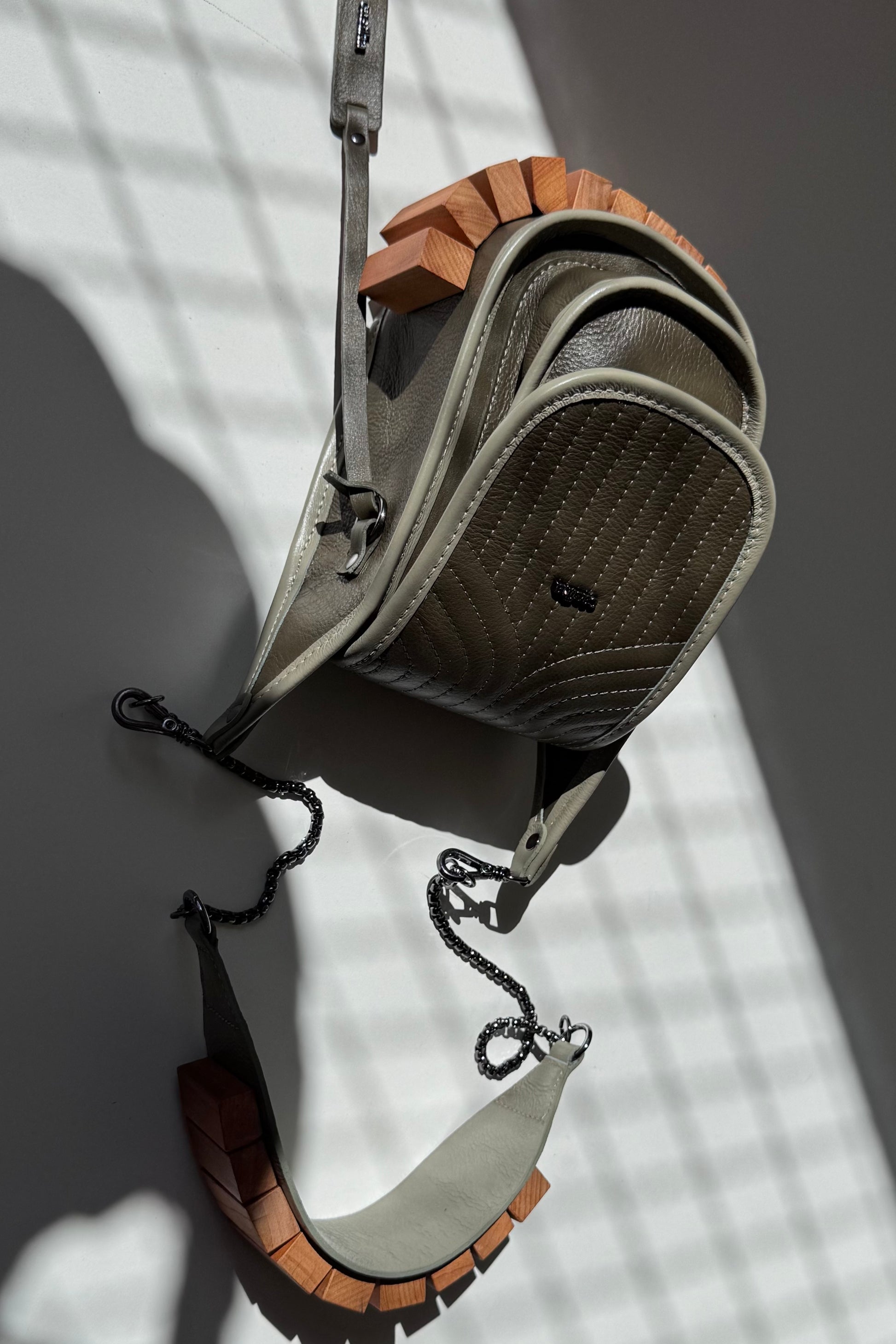 Produzida manualmente em couro legítimo, a Bolsa Restinga Nano, além da alça de corrente com detalhes em madeira de Peroba Rosa, possui outra alça lisa opcional, com ampla regulagem de altura, podendo ser usada mais curtinha sobre o ombro ou com bastante transpasse. Possui 2 compartimentos, sendo o frontal pequeno, para acomodar os menores itens. Fechamento por botão imã com forte adesão.