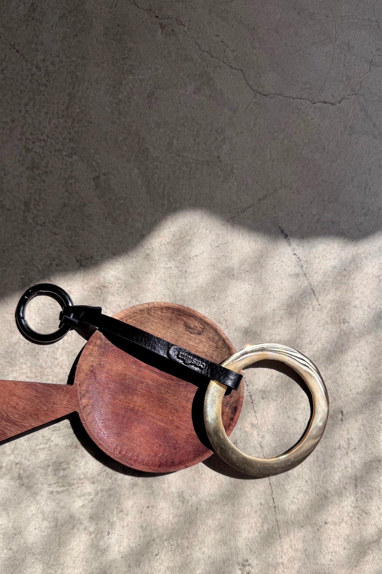 Produzido manualmente em couro legítimo, o Charm Orbe tem seu detalhe em latão e pode também ser usado como chaveiro por ser bem leve.