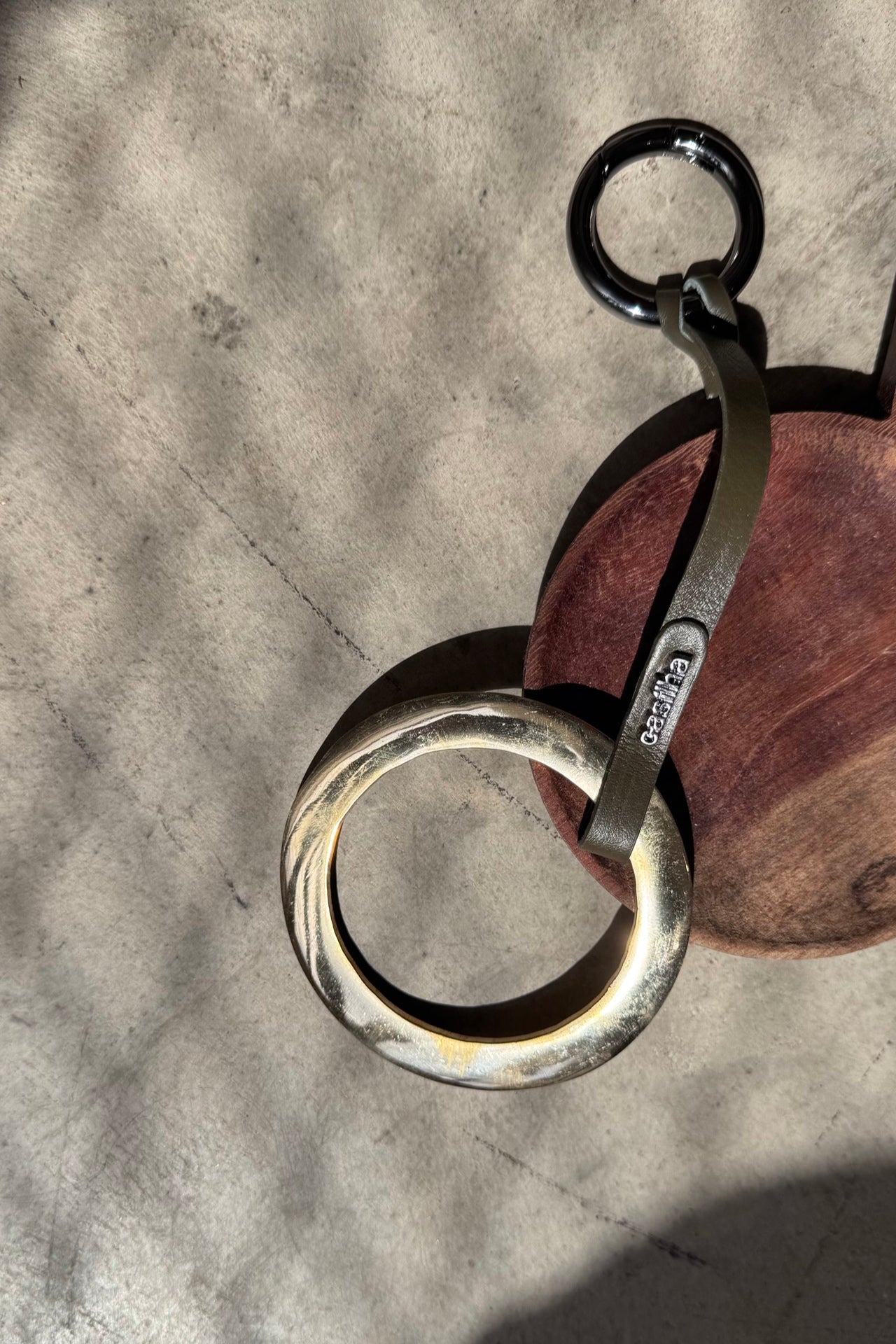 Produzido manualmente em couro legítimo, o Charm Orbe tem seu detalhe em latão e pode também ser usado como chaveiro por ser bem leve.