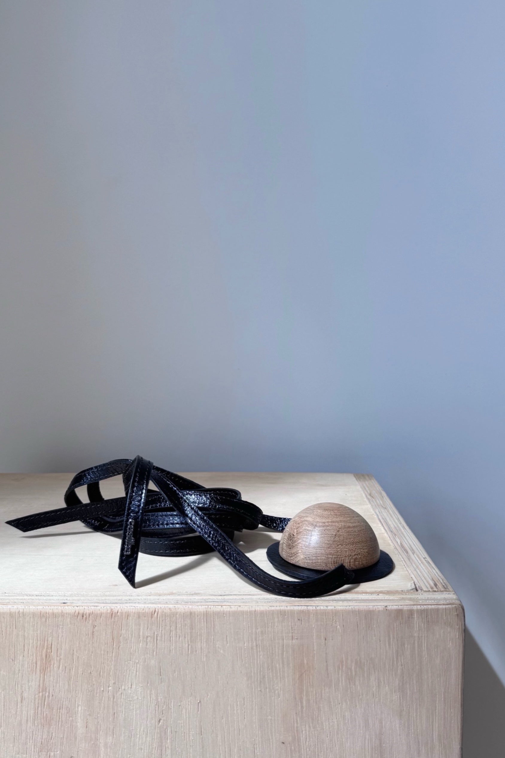 Produzido manualmente em couro legítimo, nosso Cinto Faixa Esfera tem como detalhe central a clássica assinatura da marca: a meia esfera de madeira.