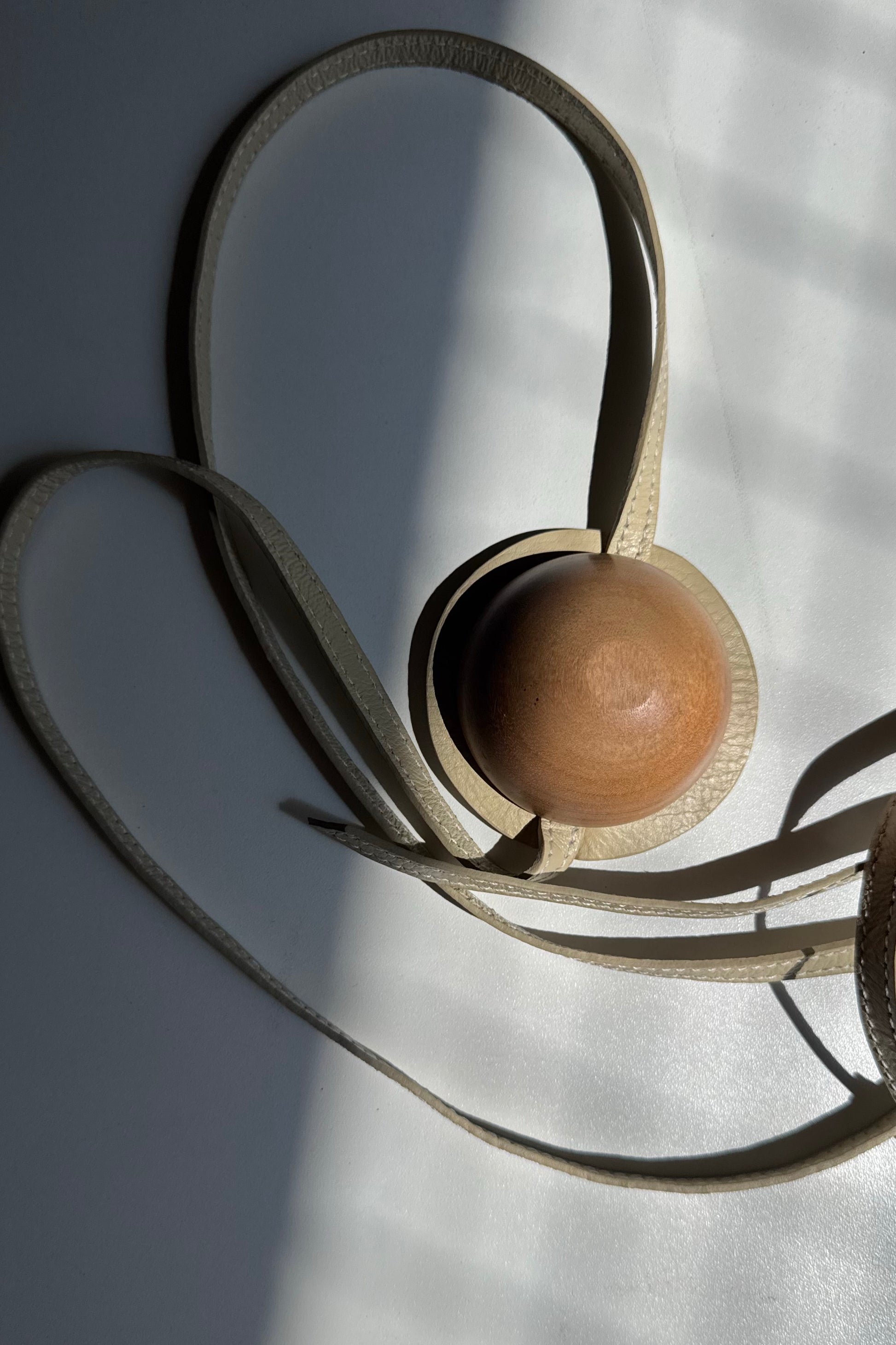 Produzido manualmente em couro legítimo, nosso Cinto Faixa Esfera tem como detalhe central a clássica assinatura da marca: a meia esfera de madeira.